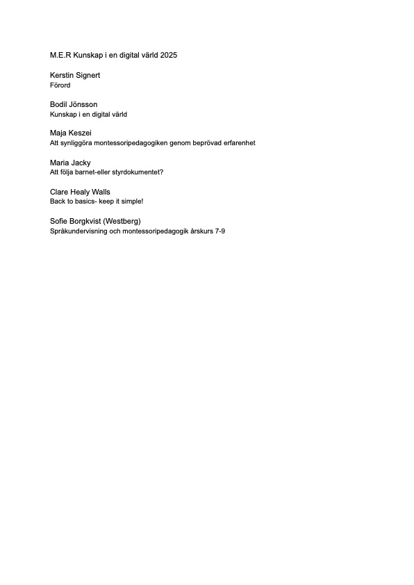 Tidskriften är ett forum för diskussion om montessoripedagogikens pedagogik och filosofi i teori och praktik. Att lyfta fram relevant forskning är ett centralt tema i samtliga nummer av tidskriften.